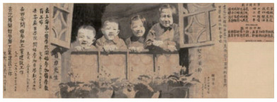 胡懋廉教授画四子女大幅画卷(复旦大学图书馆医科馆馆藏)