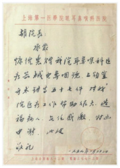 致胡懋廉院长感谢信(复旦大学附属眼耳鼻喉科医院提供)