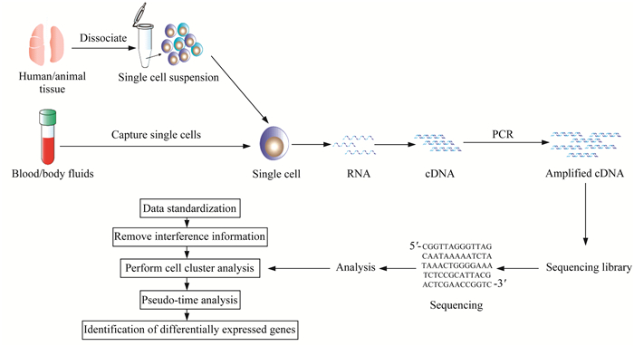 图 1 单细胞转录组测序流程图 Fig 1 Flow chart of scRNA-seq |